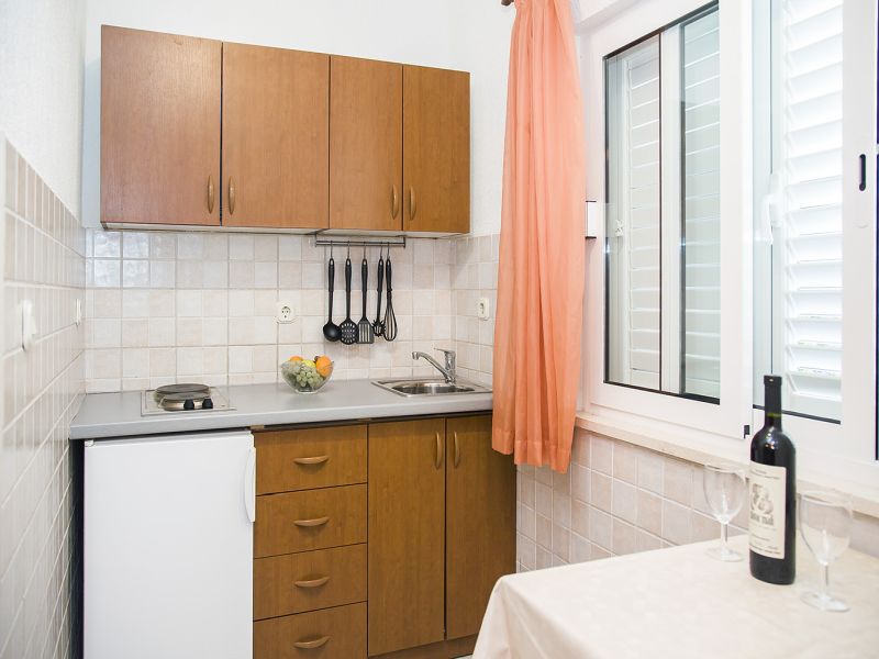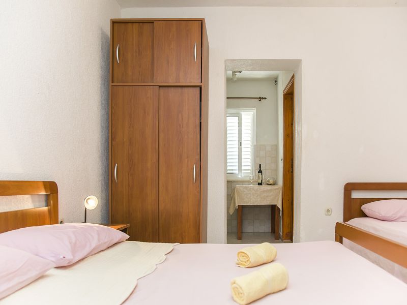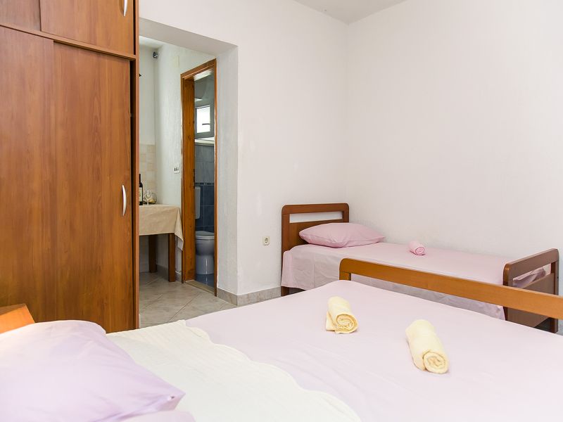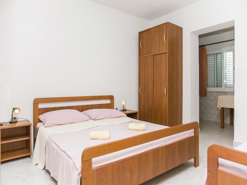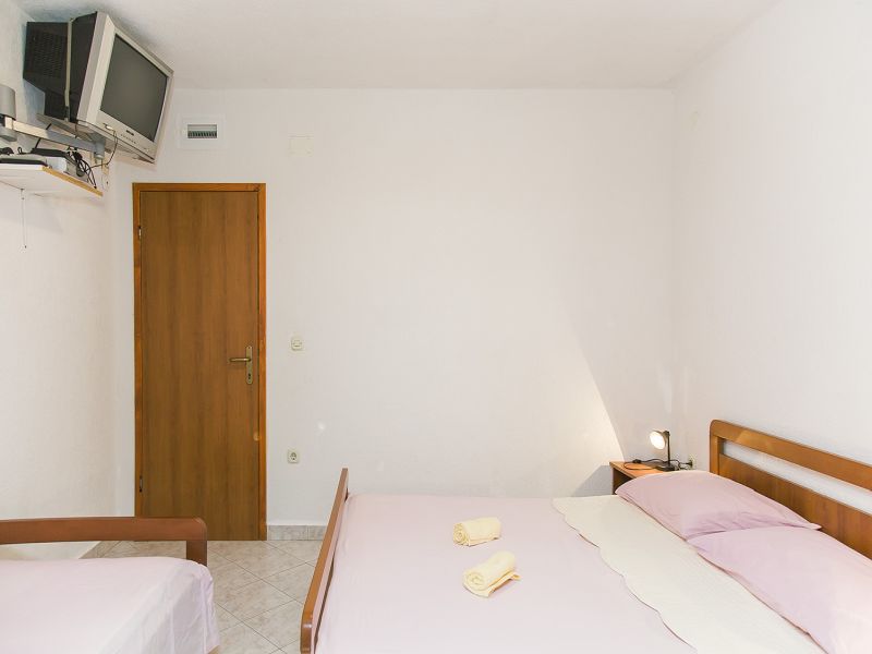 Spavaća soba sa dnevnom sobom, tarasom i pogledom na more , jednim pomočnim ležajem kupaonicom, SAT/TV, pristup internetu.