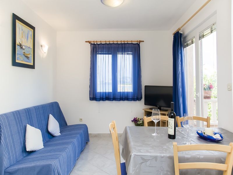 Spavaća soba sa dnevnom sobom ,balkonom i pogledom na more , jednim pomoćnim ležajem, kupaonicom, SAT/TV, pristup internetu.