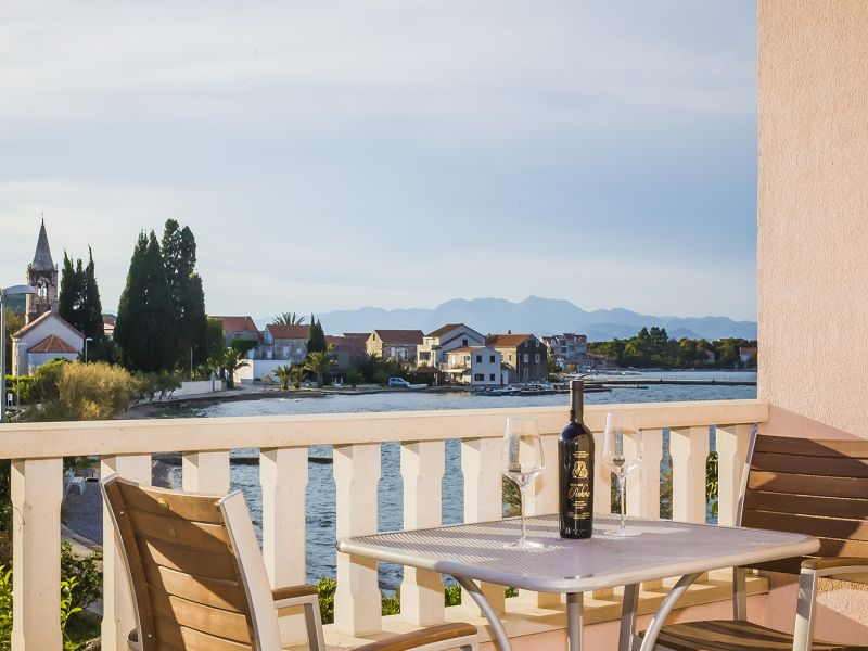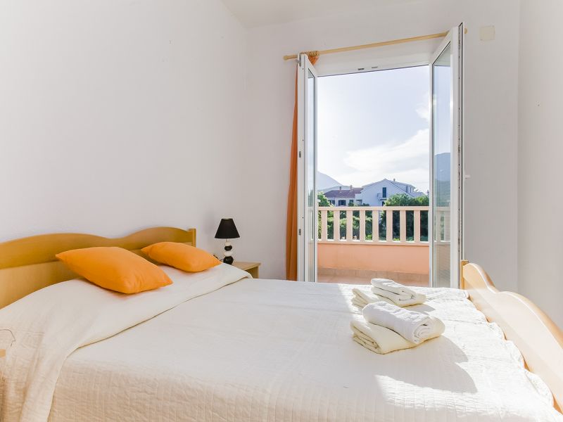 Spavaća soba sa dnevnom sobom,sa 2 balkona i pogledom na more , jednim pomočnim ležajem, kuhinjom, kupaonicom, SAT/TV, pristup internetu.